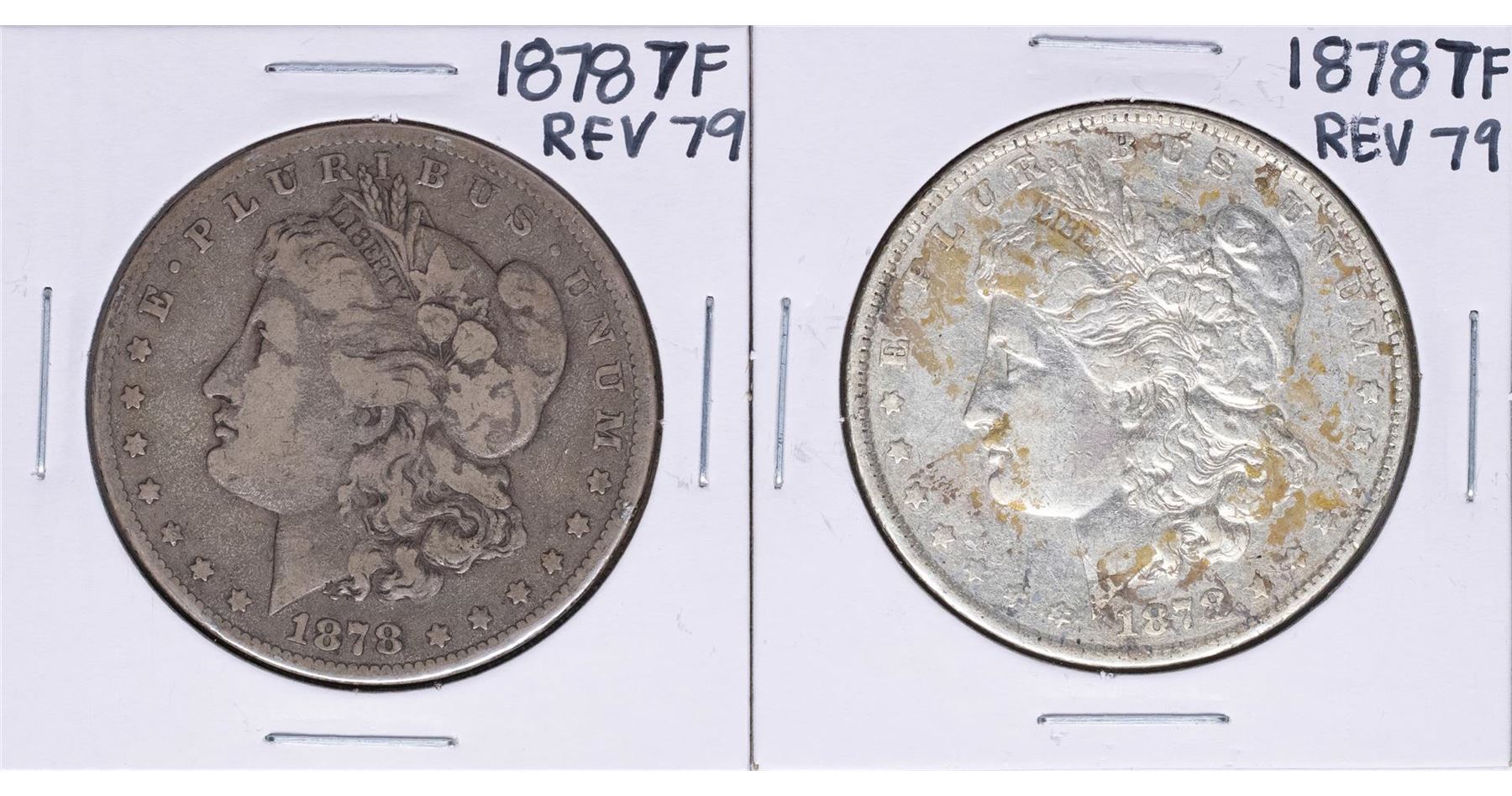 Lot of (2) 1878 7TF Reverse of 79' $1 Morgan Silver Dollar Coins