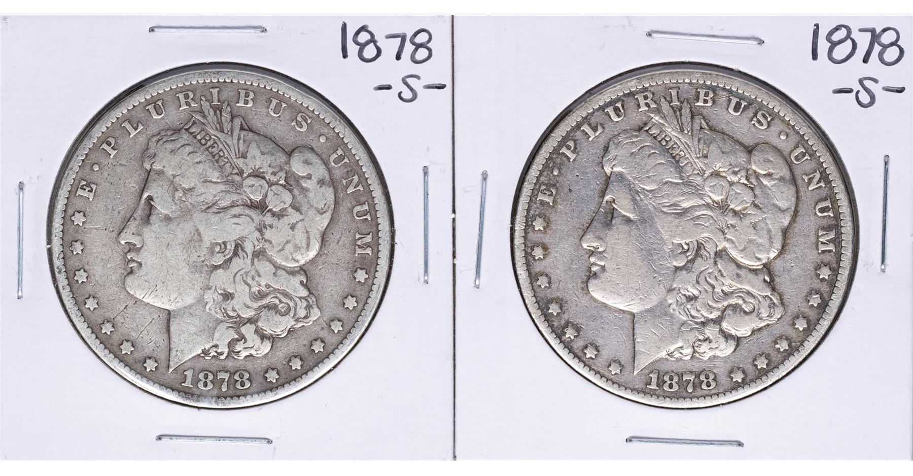 One Lot of (2) 1878-S $1 Morgan Silver Dollar Coins.