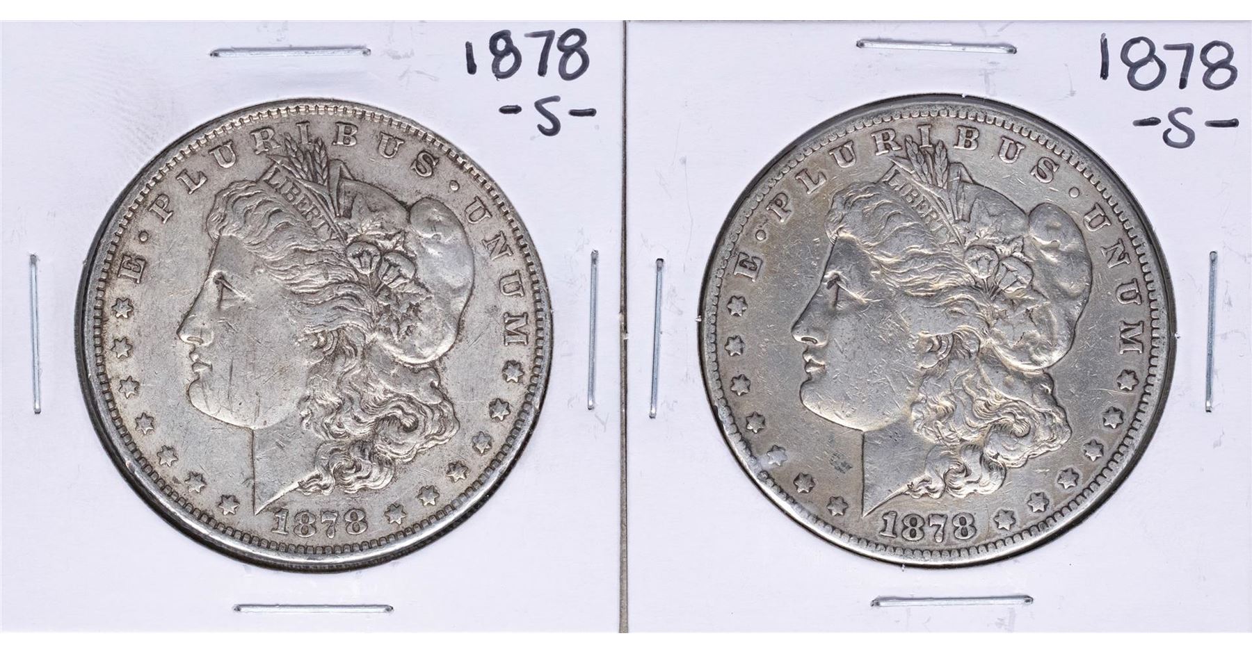One Lot of (2) 1878-S $1 Morgan Silver Dollar Coins.