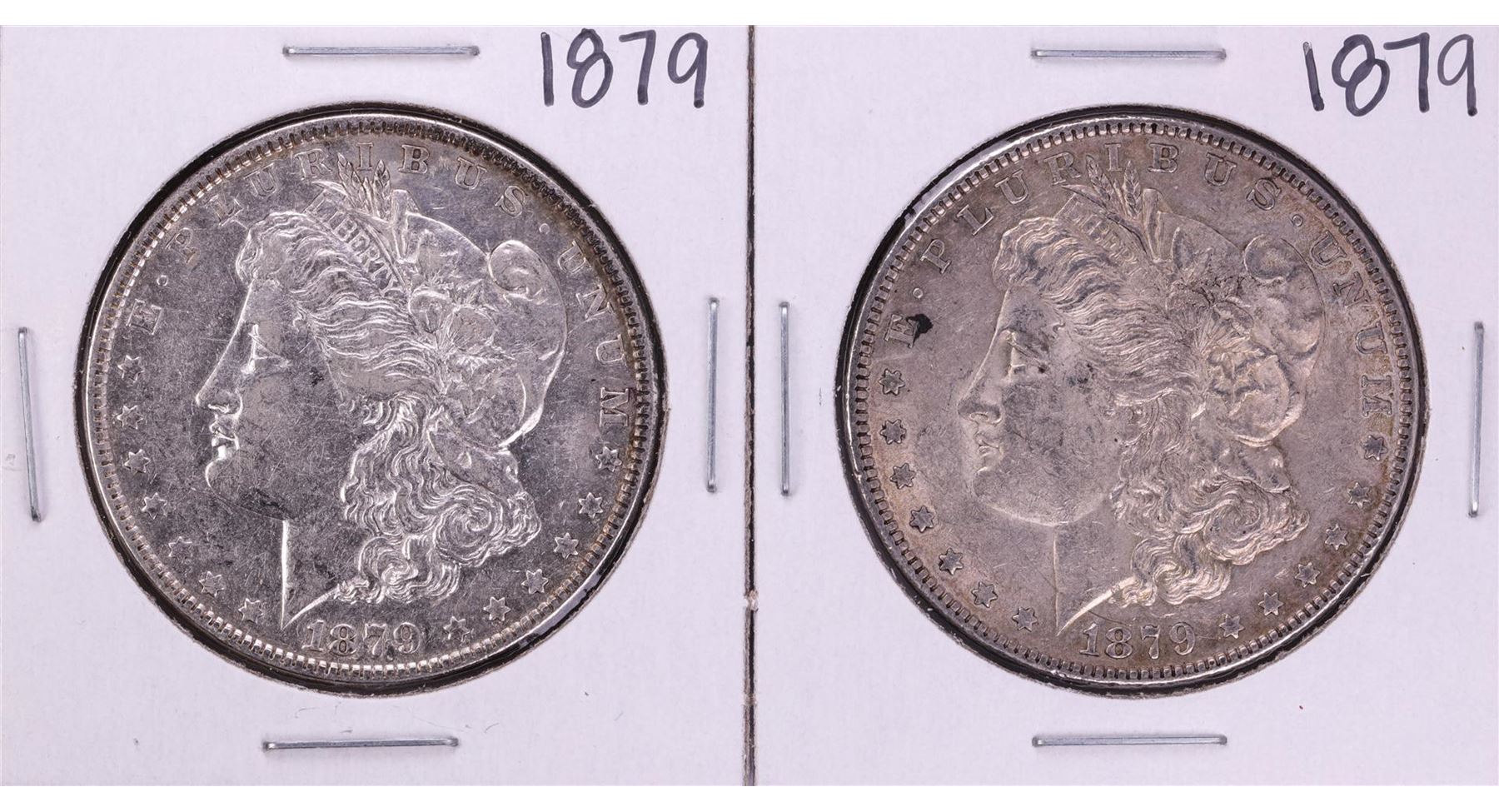 One Lot of (2) 1879 $1 Morgan Silver Dollar Coins.