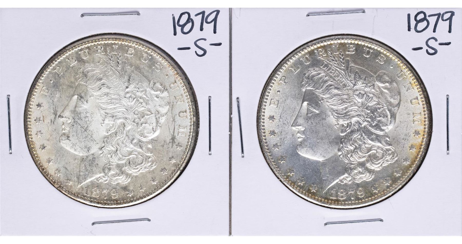 One Lot of (2) 1879-S $1 Morgan Silver Dollar Coins.