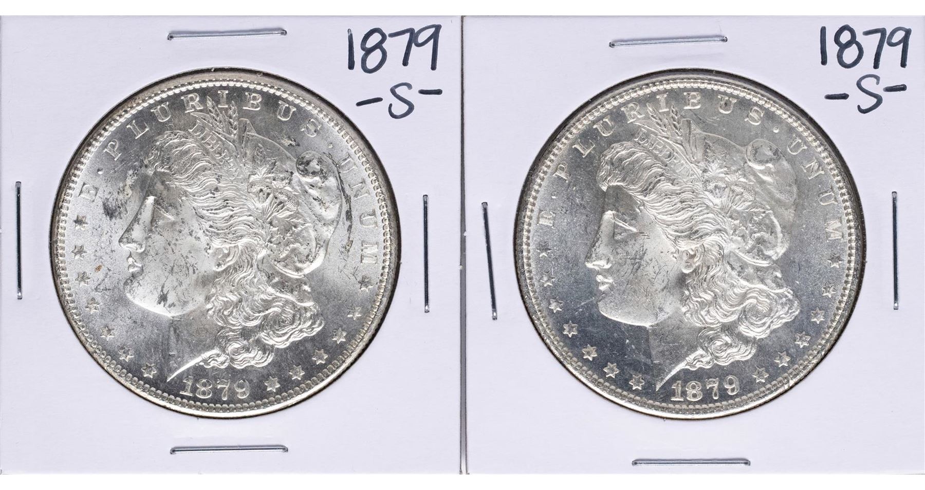 One Lot of (2) 1879-S $1 Morgan Silver Dollar Coins.