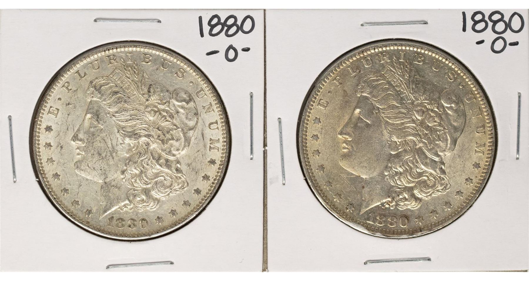 One Lot of (2) 1880-O $1 Morgan Silver Dollar Coins.