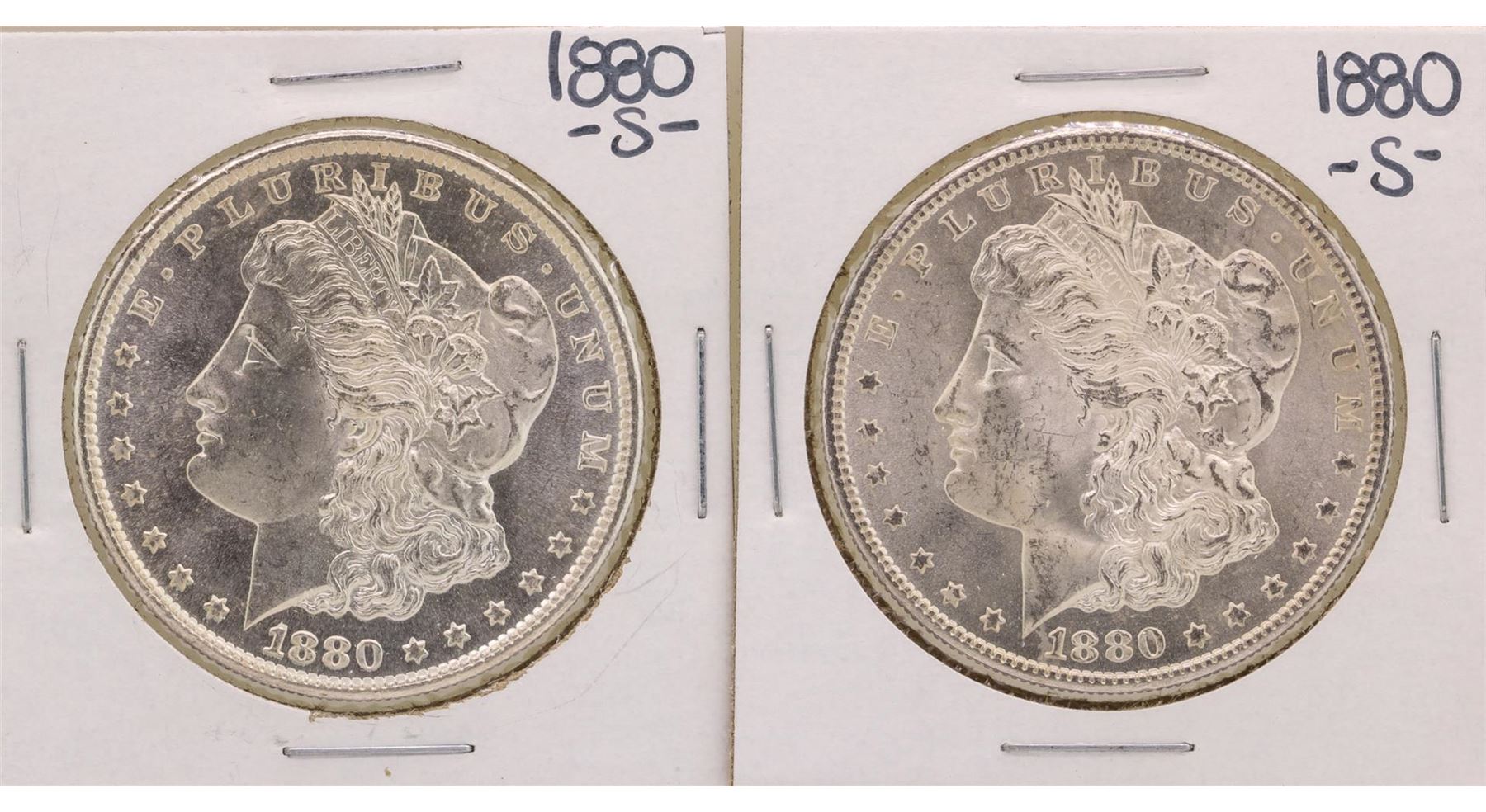 One Lot of (2) 1880-S $1 Morgan Silver Dollar Coins.