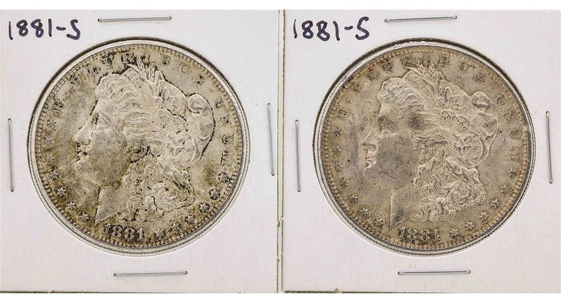 One Lot of (2) 1881-S $1 Morgan Silver Dollar Coins.