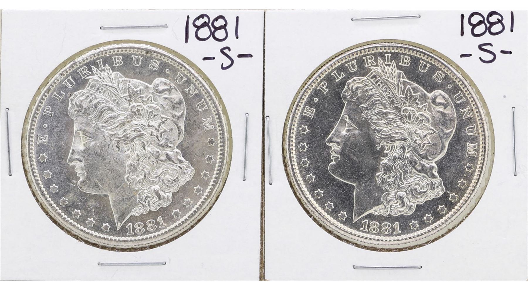 One Lot of (2) 1881-S $1 Morgan Silver Dollar Coins.