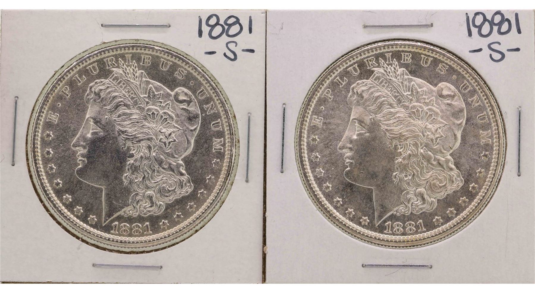 One Lot of (2) 1881-S $1 Morgan Silver Dollar Coins.