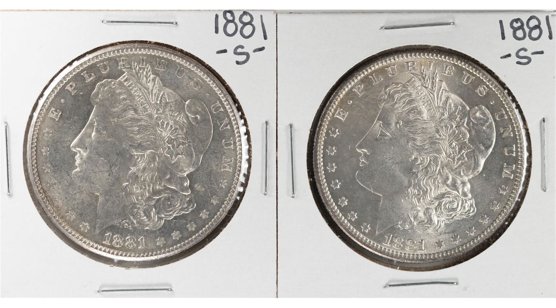 One Lot of (2) 1881-S $1 Morgan Silver Dollar Coins.