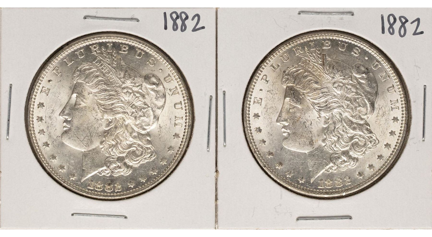 One Lot of (2) 1882 $1 Morgan Silver Dollar Coins.