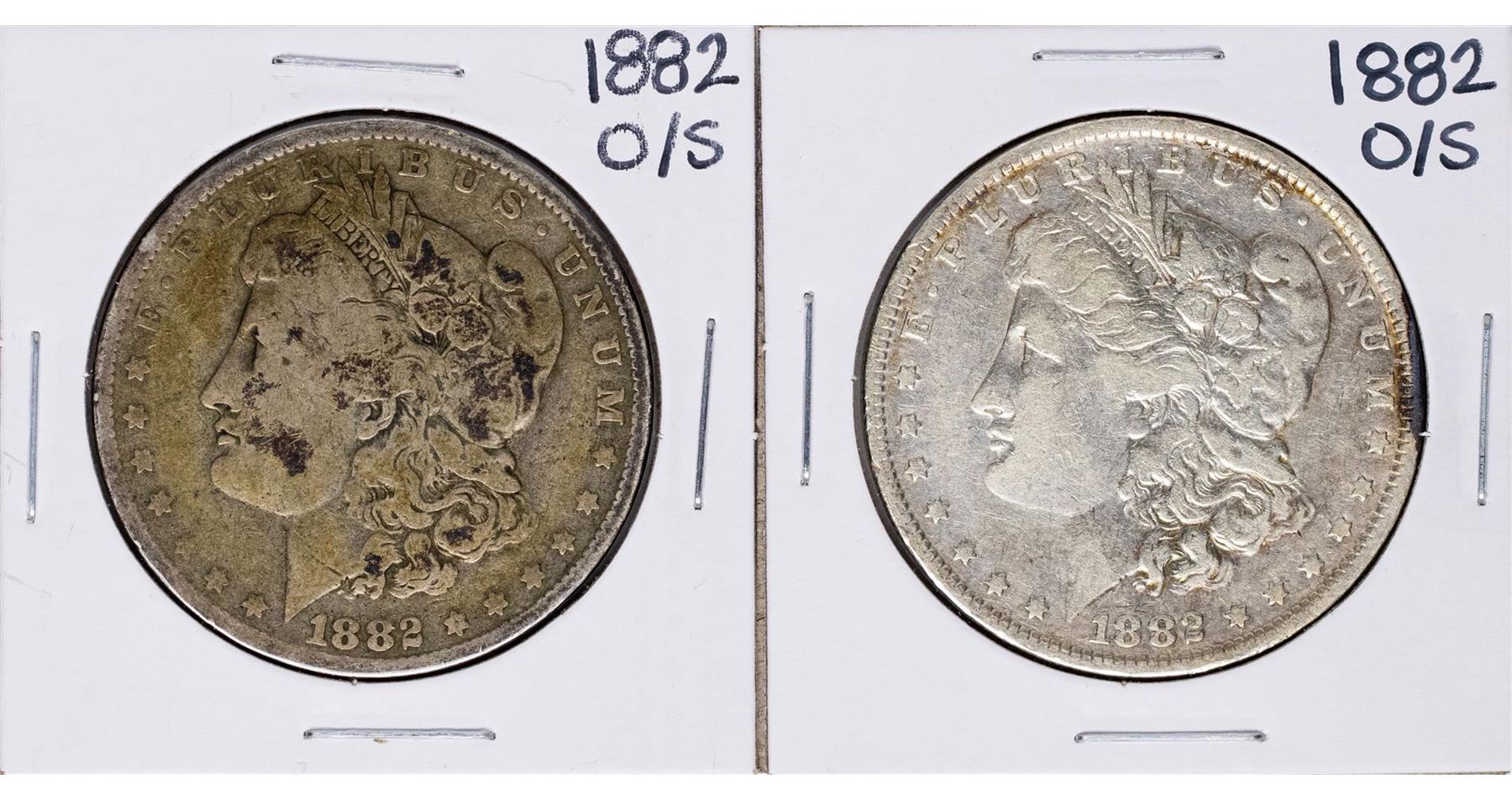 One Lot of (2) 1882-O/S $1 Morgan Silver Dollar Coins.