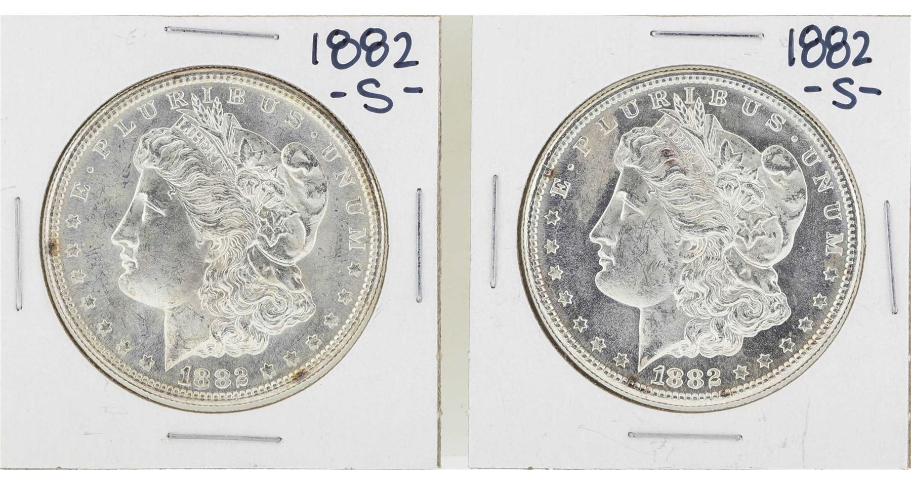One Lot of (2) 1882-S $1 Morgan Silver Dollar Coins.