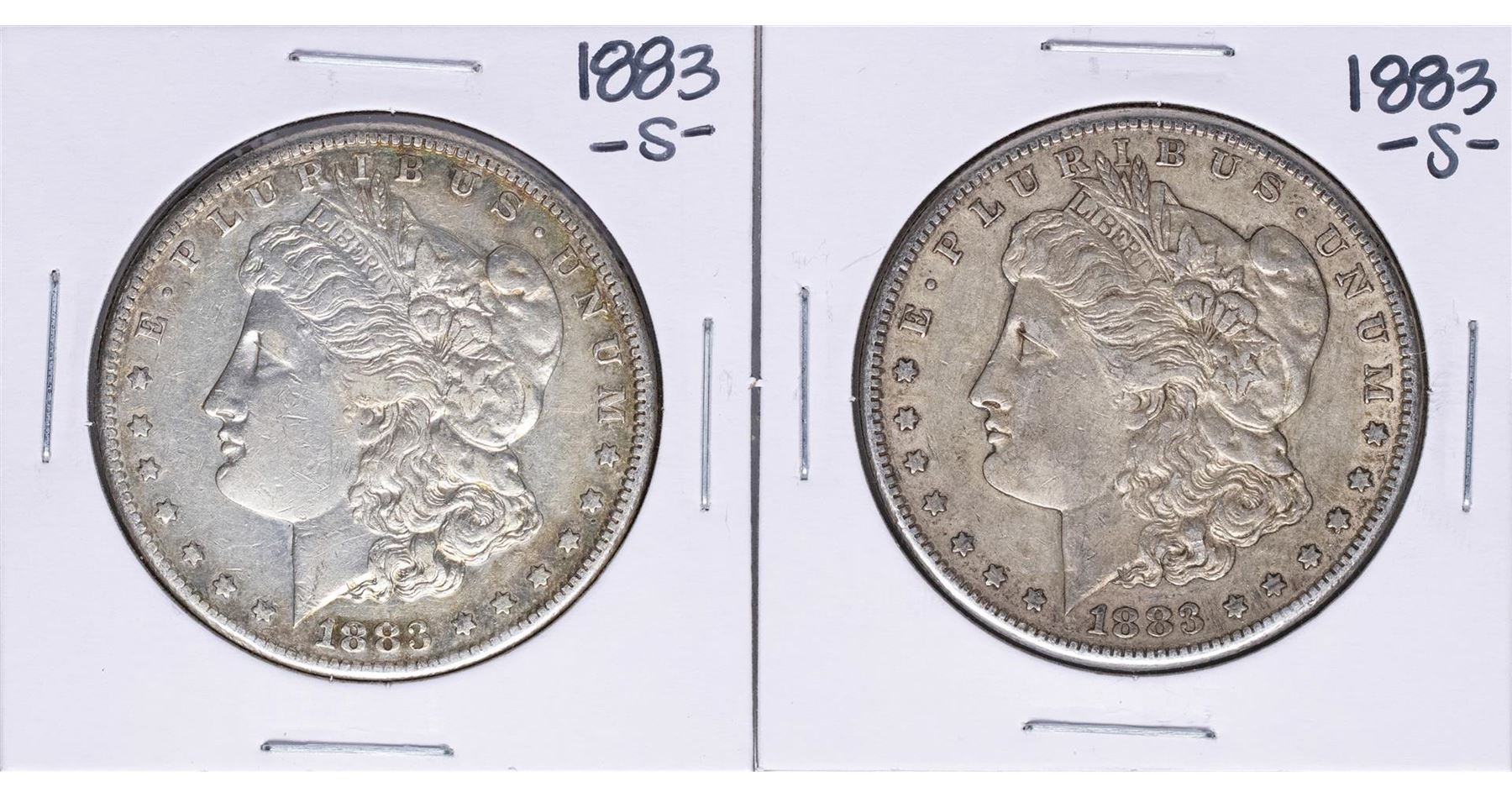 One Lot of (2) 1883-S $1 Morgan Silver Dollar Coins.