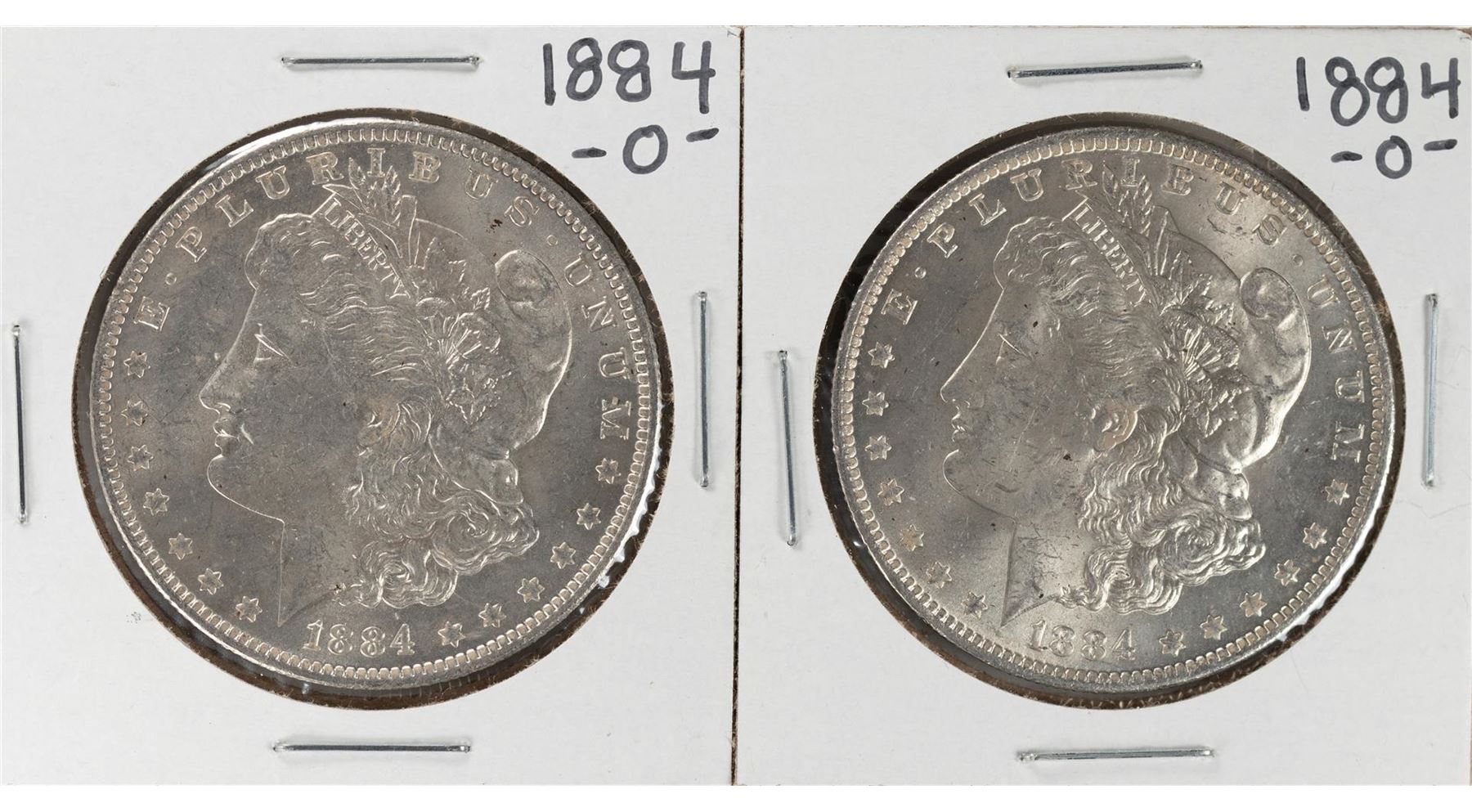 One Lot of (2) 1884-O $1 Morgan Silver Dollar Coins.
