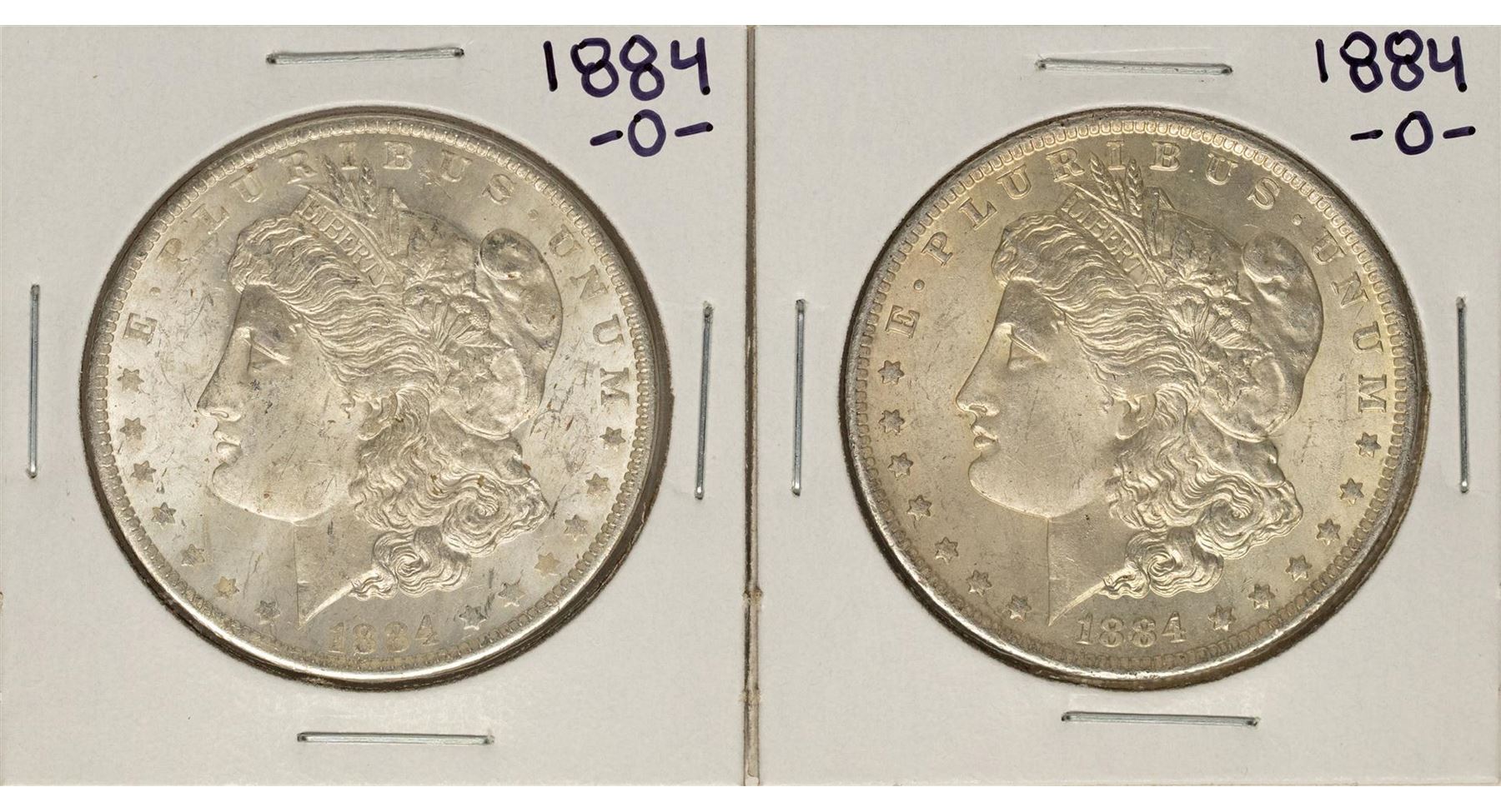 One Lot of (2) 1884-O $1 Morgan Silver Dollar Coins.
