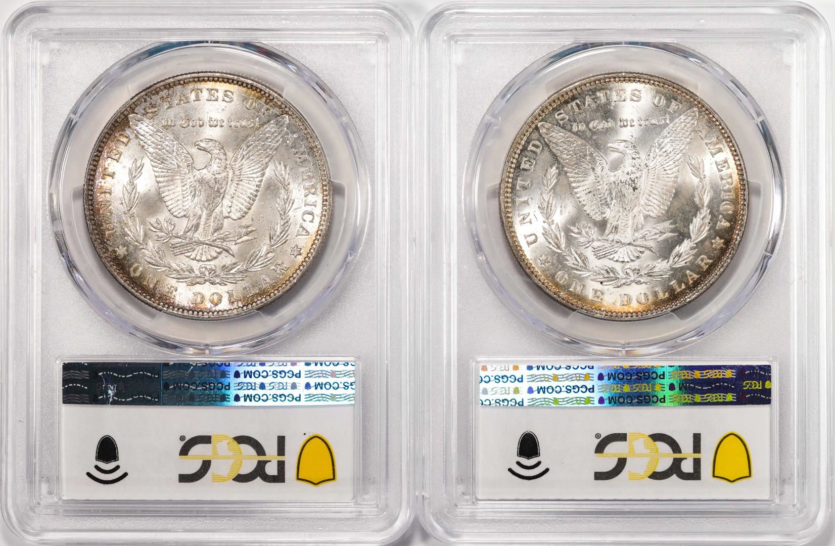Lot of (2) 1885 $1 Morgan Silver Dollar Coins PCGS MS63 Nice Toning
