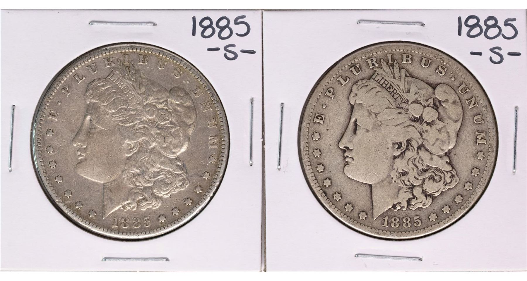 One Lot of (2) 1885-S $1 Morgan Silver Dollar Coins.