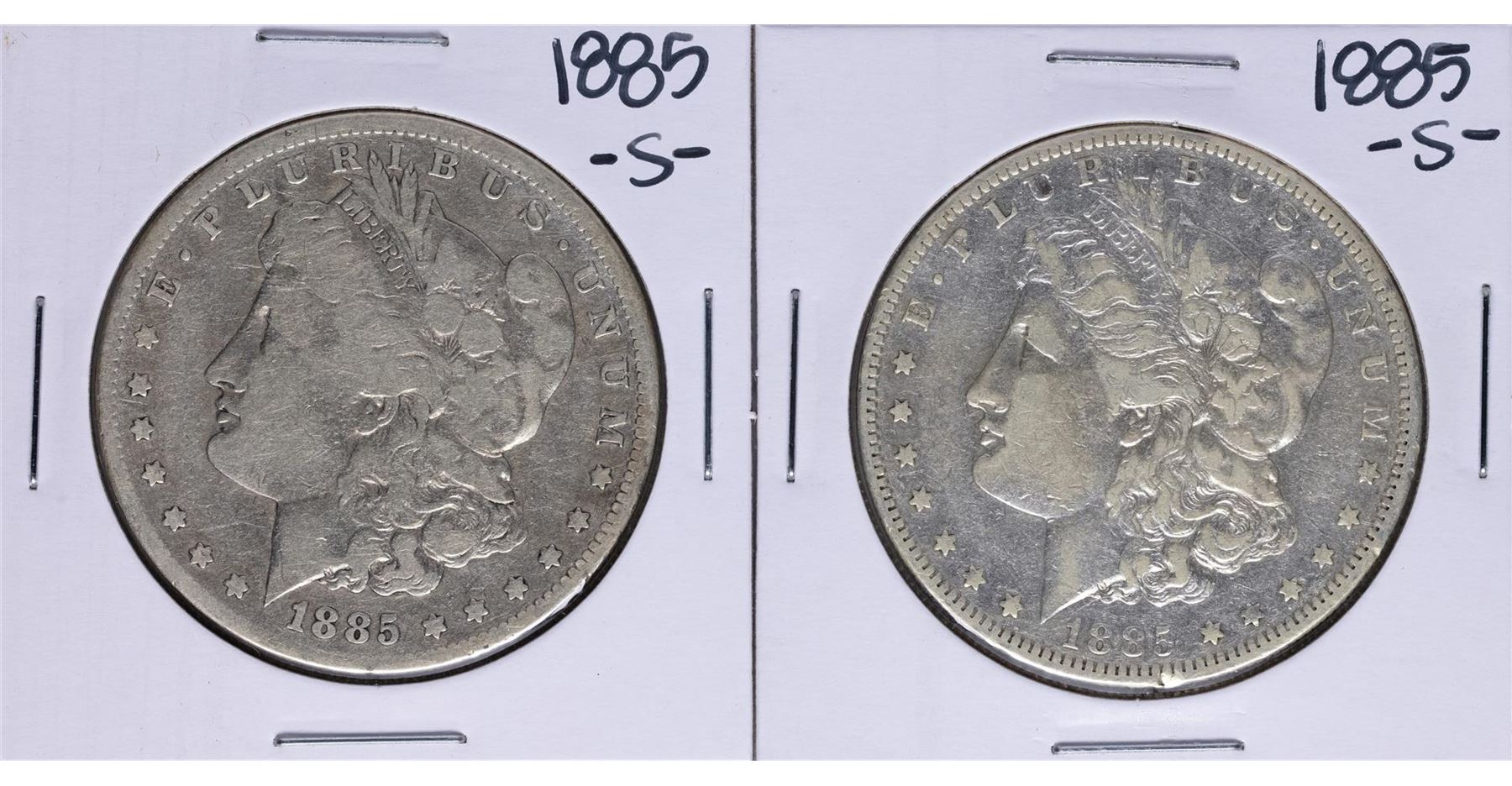 One Lot of (2) 1885-S $1 Morgan Silver Dollar Coins.