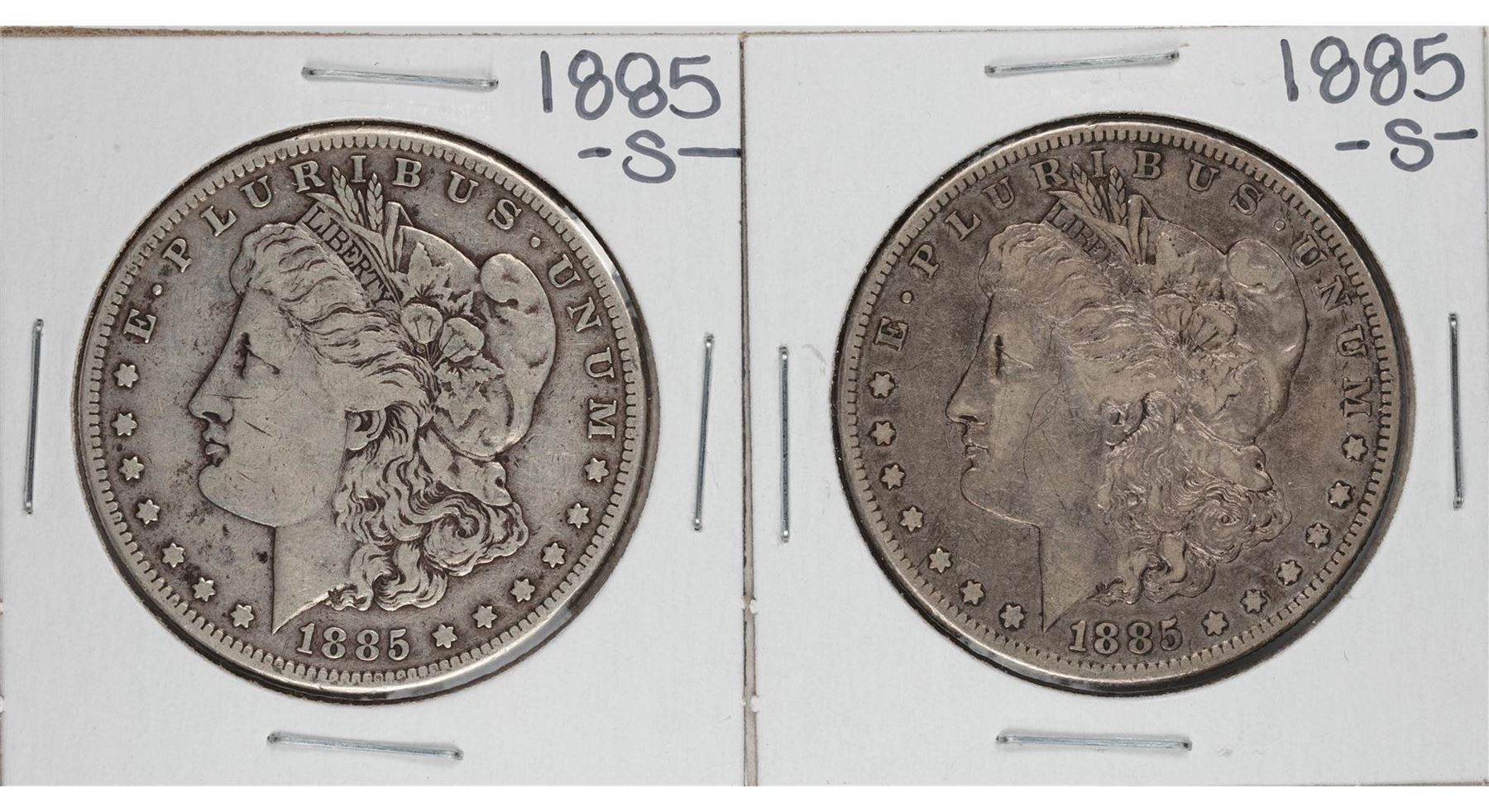 One Lot of (2) 1885-S $1 Morgan Silver Dollar Coins.