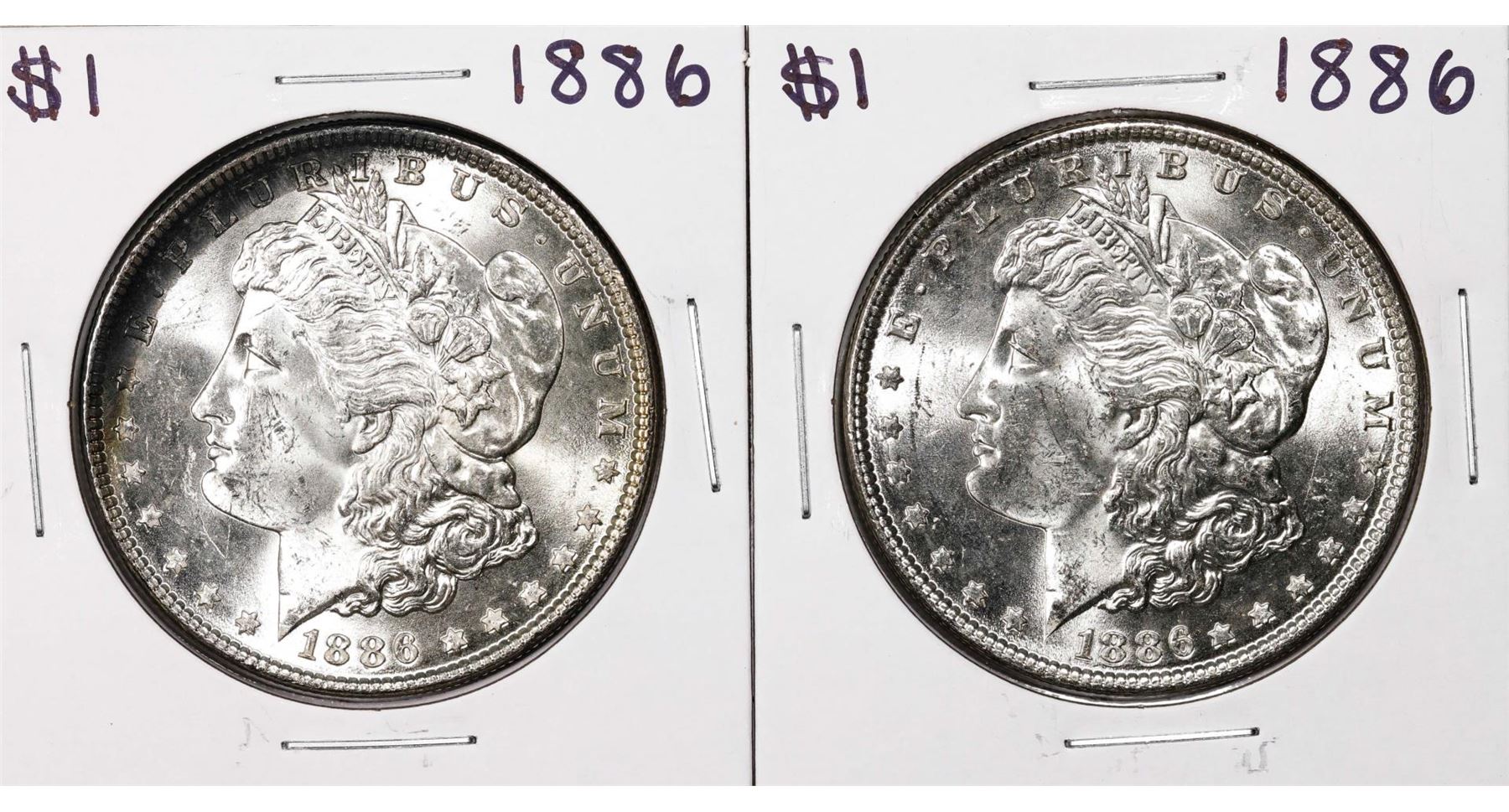 One Lot of (2) 1886 $1 Morgan Silver Dollar Coins.