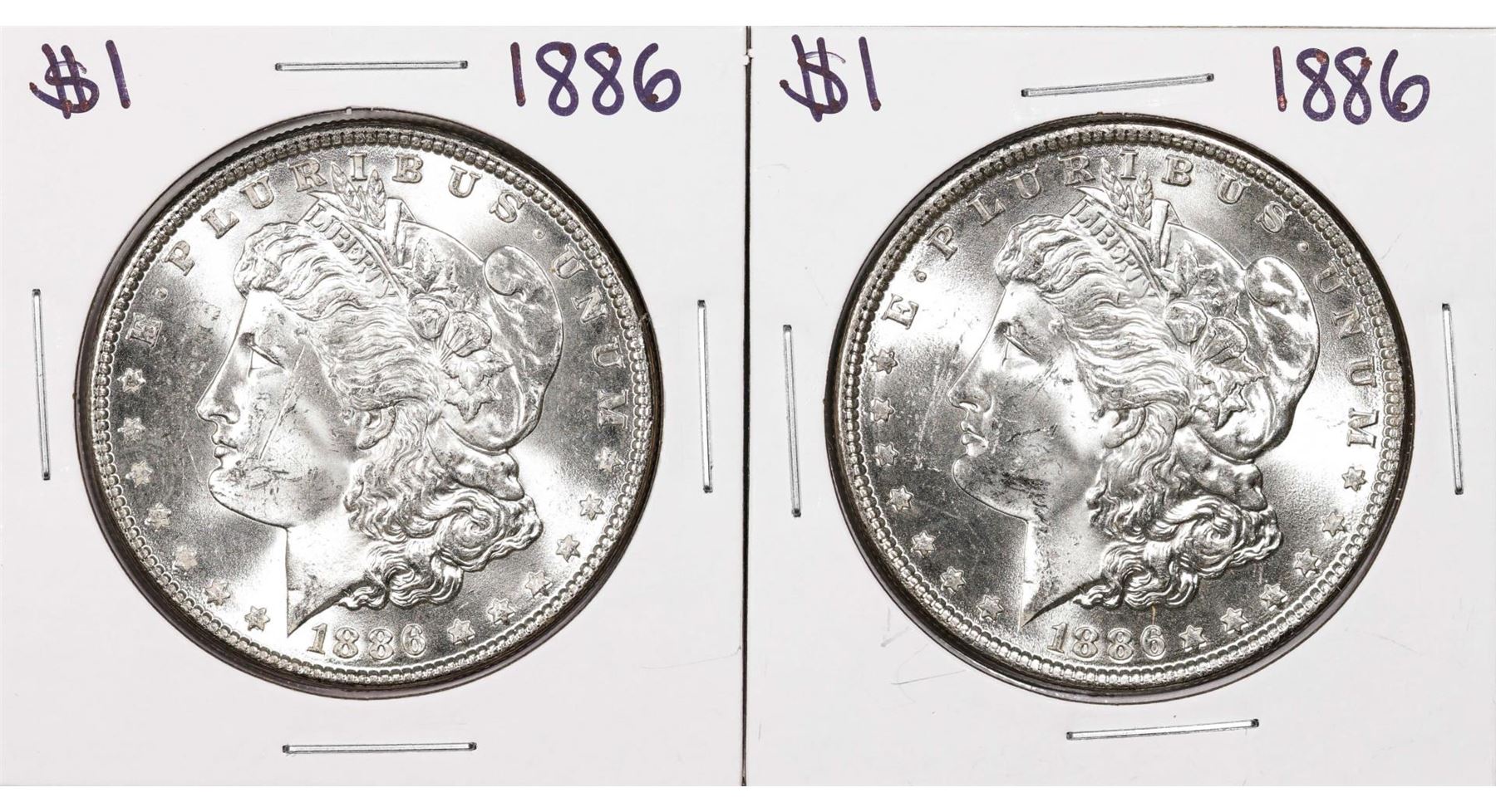 One Lot of (2) 1886 $1 Morgan Silver Dollar Coins.