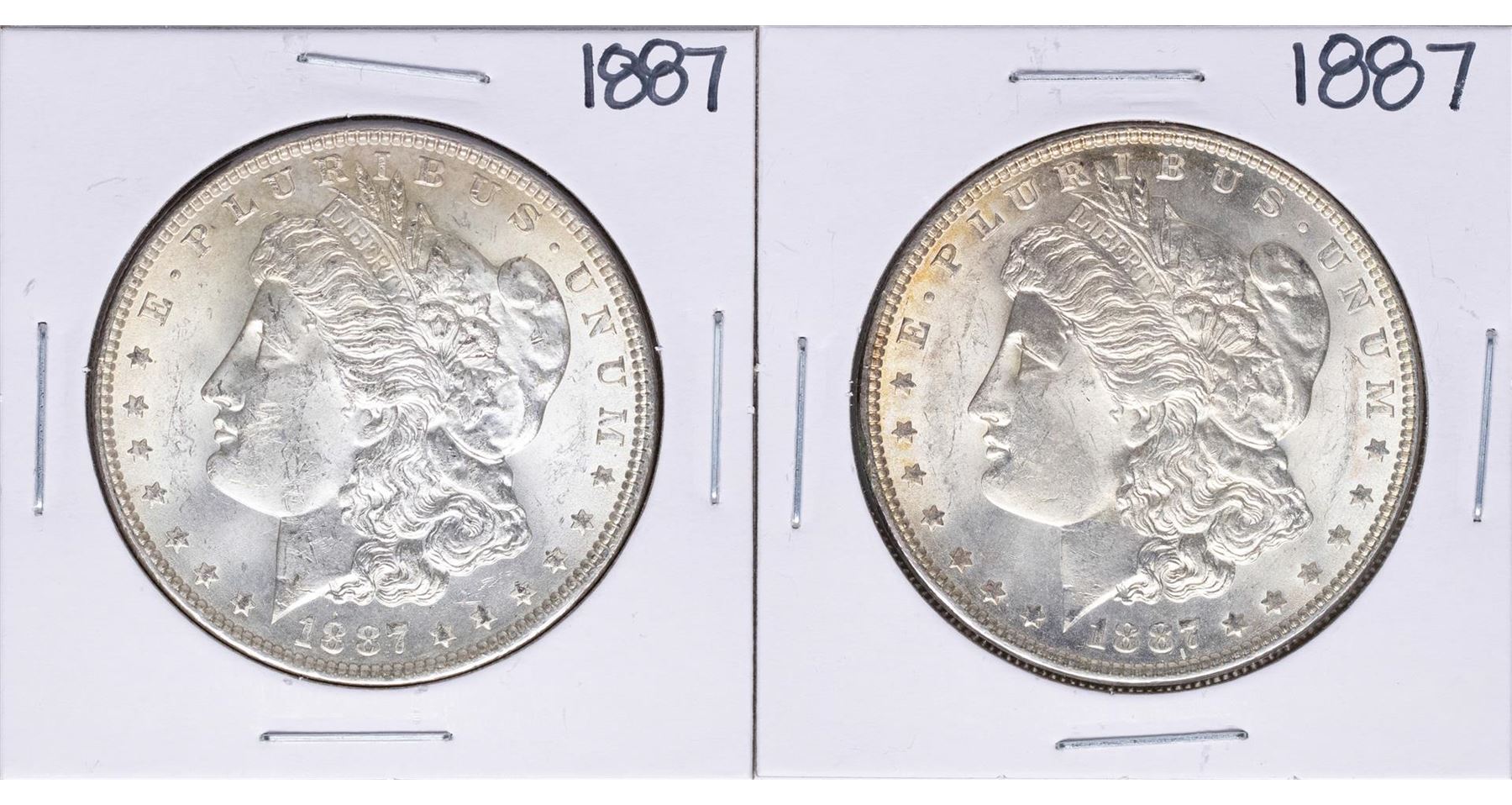 One Lot of (2) 1887 $1 Morgan Silver Dollar Coins.
