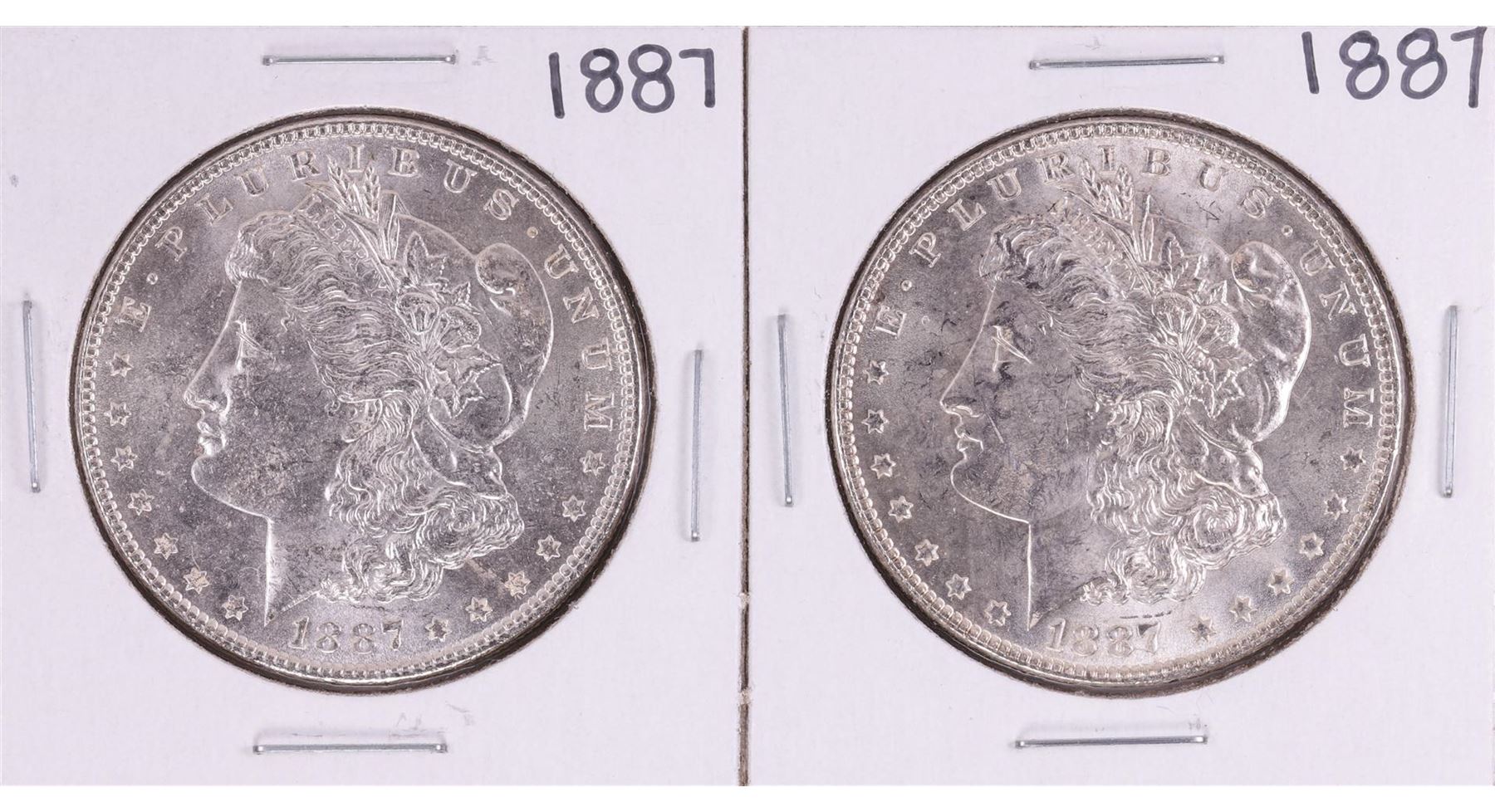 One Lot of (2) 1887 $1 Morgan Silver Dollar Coins.