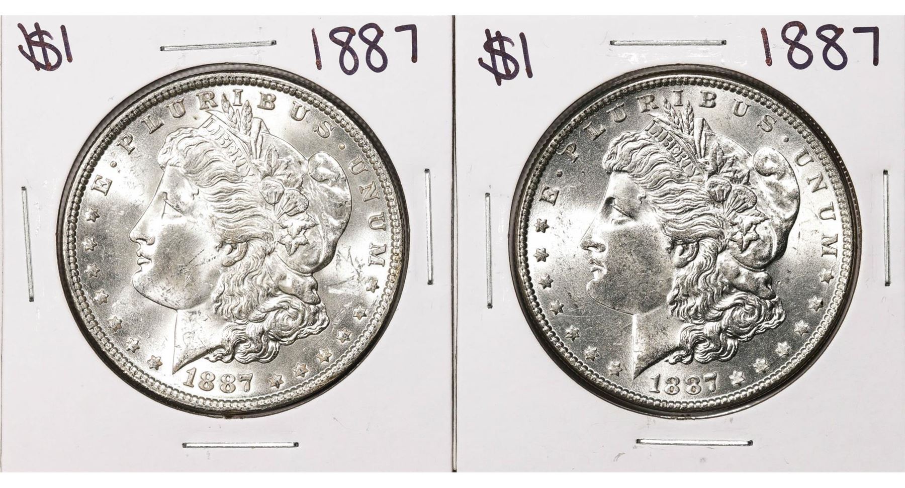 One Lot of (2) 1887 $1 Morgan Silver Dollar Coins.