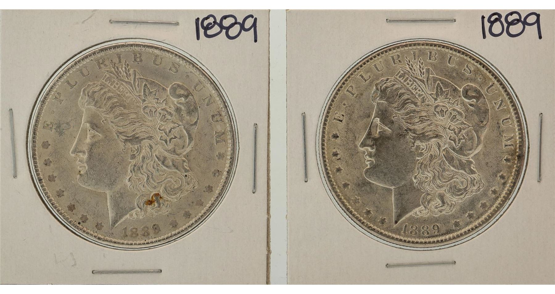 One Lot of (2) 1889 $1 Morgan Silver Dollar Coins.