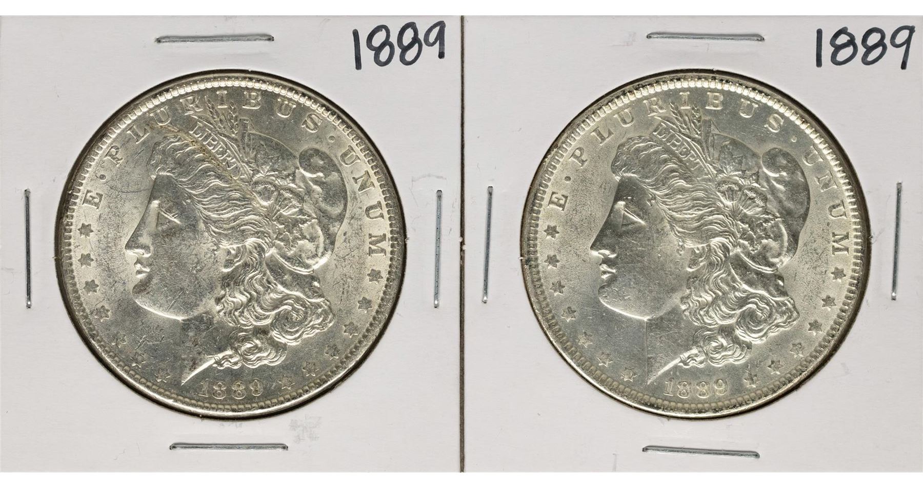 One Lot of (2) 1889 $1 Morgan Silver Dollar Coins.