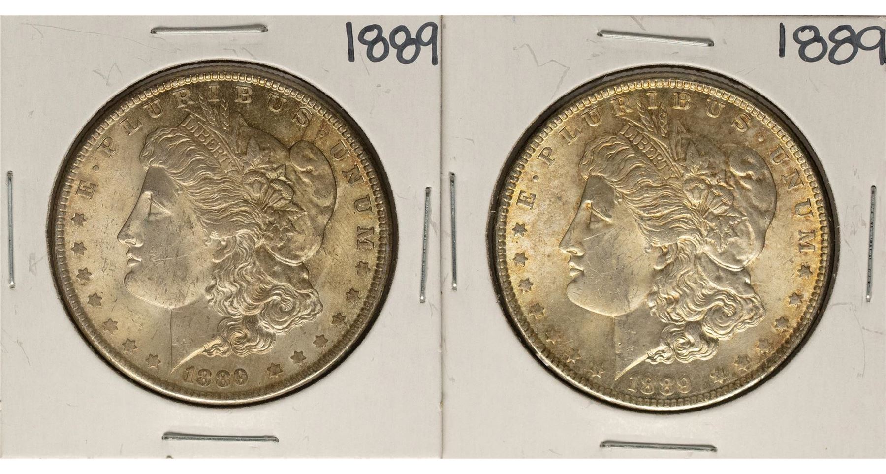 One Lot of (2) 1889 $1 Morgan Silver Dollar Coins.