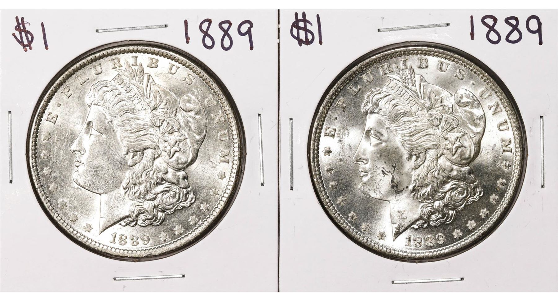 One Lot of (2) 1889 $1 Morgan Silver Dollar Coins.