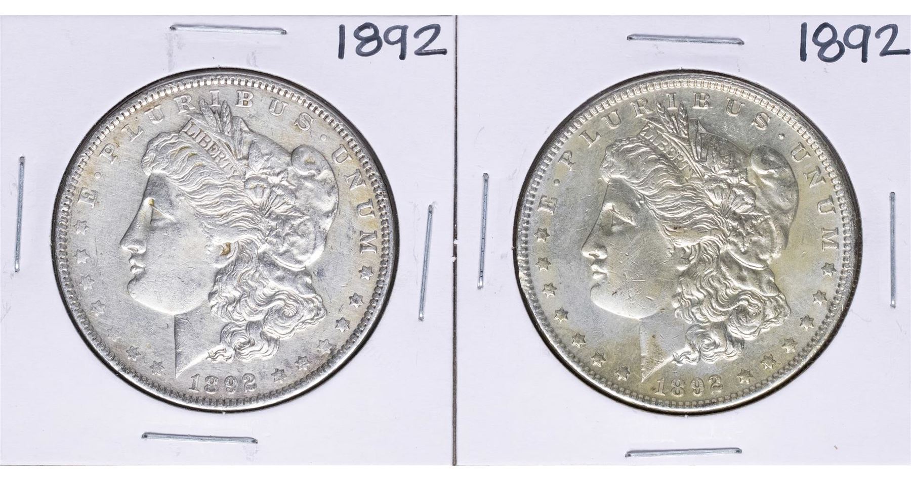 One Lot of (2) 1892 $1 Morgan Silver Dollar Coins.