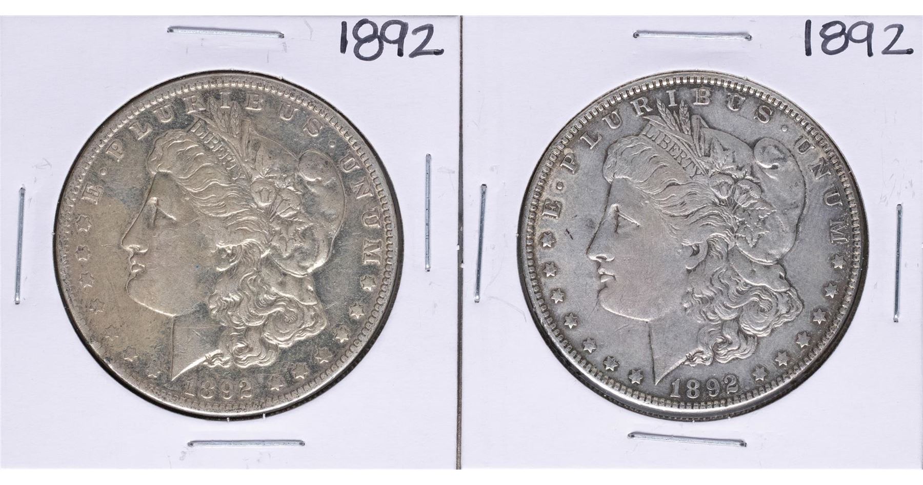 One Lot of (2) 1892 $1 Morgan Silver Dollar Coins.