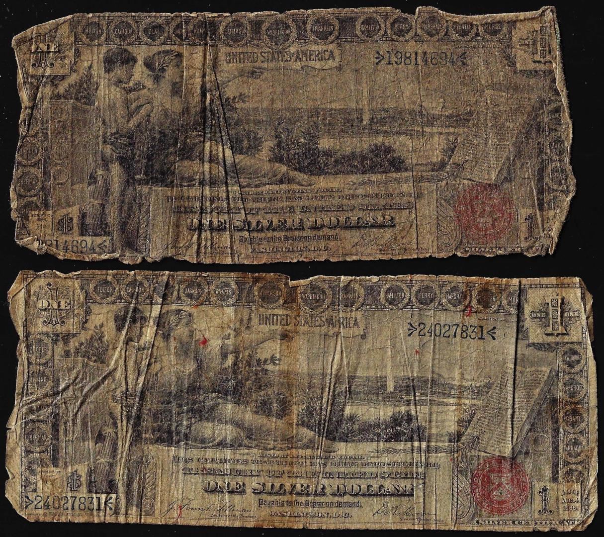 One Lot of (2) 1896 $1 Educational Silver Certificate Notes.