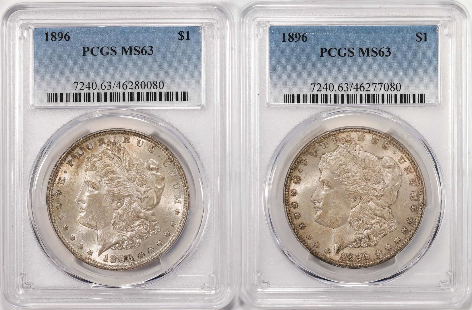 One Lot of (2) 1896 $1 Morgan Silver Dollar Coins PCGS MS63. PCGS Graded.