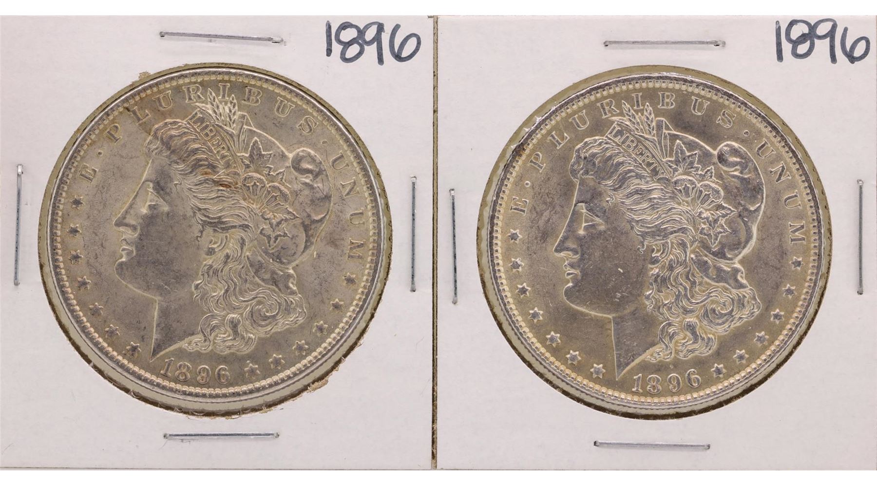 One Lot of (2) 1896 $1 Morgan Silver Dollar Coins.