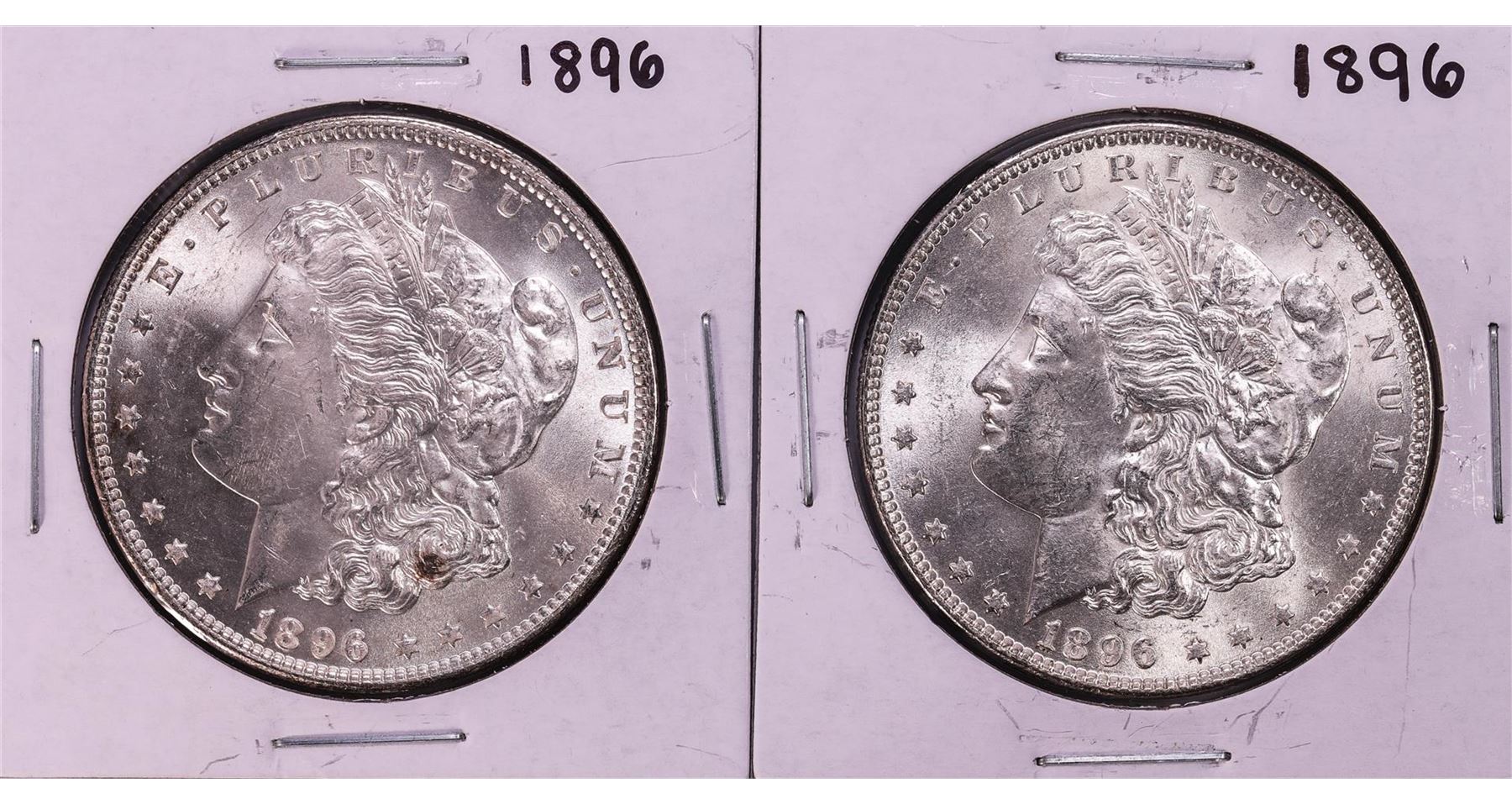 One Lot of (2) 1896 $1 Morgan Silver Dollar Coins.