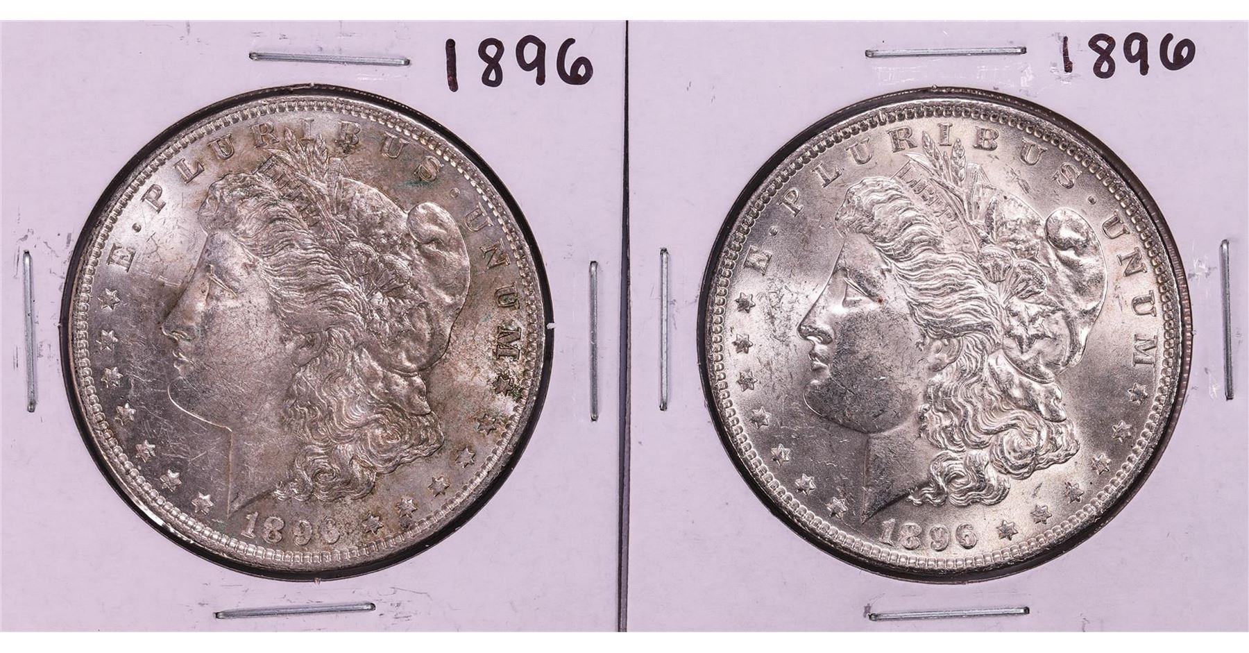 One Lot of (2) 1896 $1 Morgan Silver Dollar Coins.