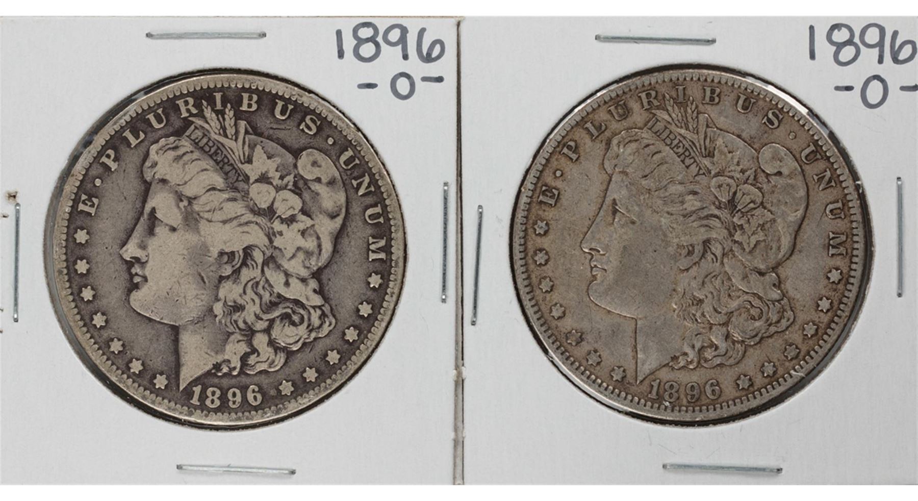 One Lot of (2) 1896-O $1 Morgan Silver Dollar Coins.
