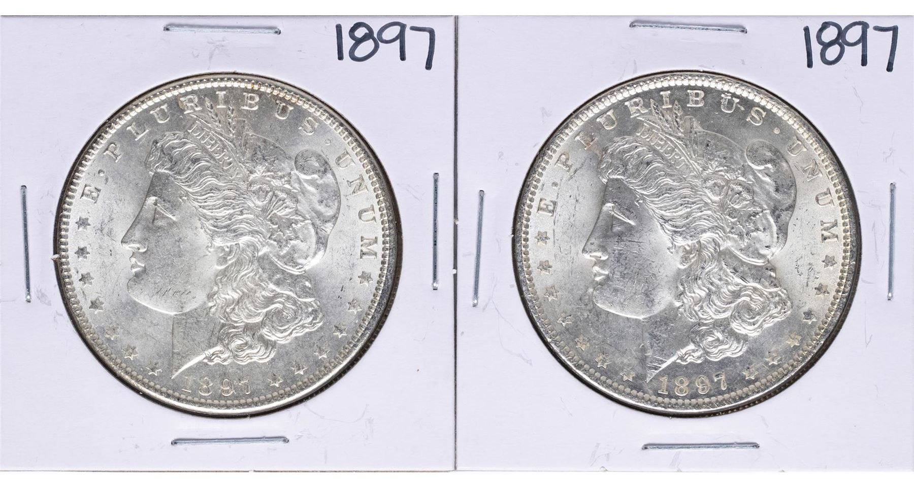 One Lot of (2) 1897 $1 Morgan Silver Dollar Coins.