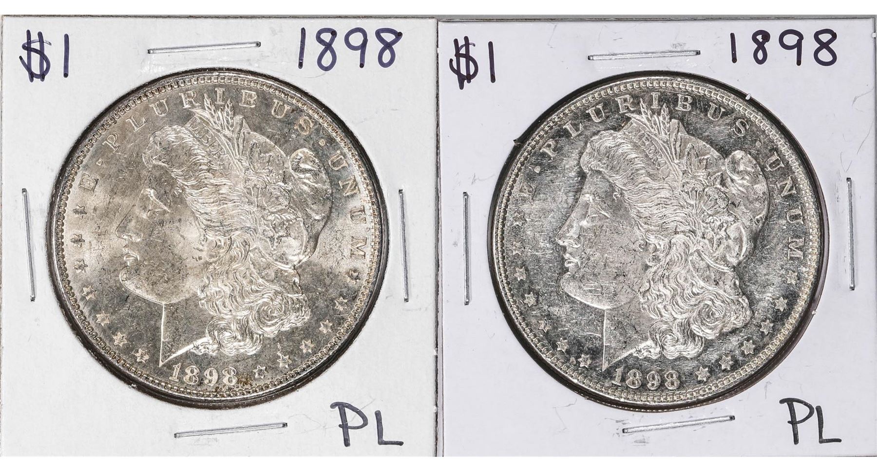 One Lot of (2) 1898 $1 Morgan Silver Dollar Coins Proof Like.