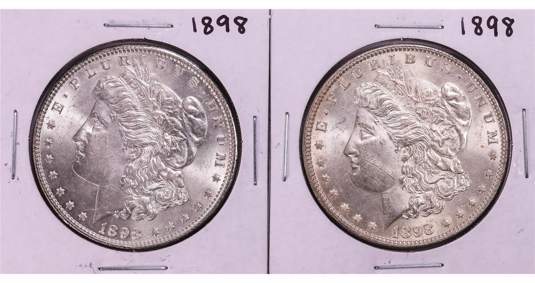 One Lot of (2) 1898 $1 Morgan Silver Dollar Coins.