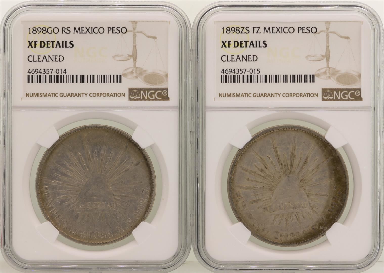Lot of (2) 1898 Mexico Pesos Silver Coins NGC Graded XF Details