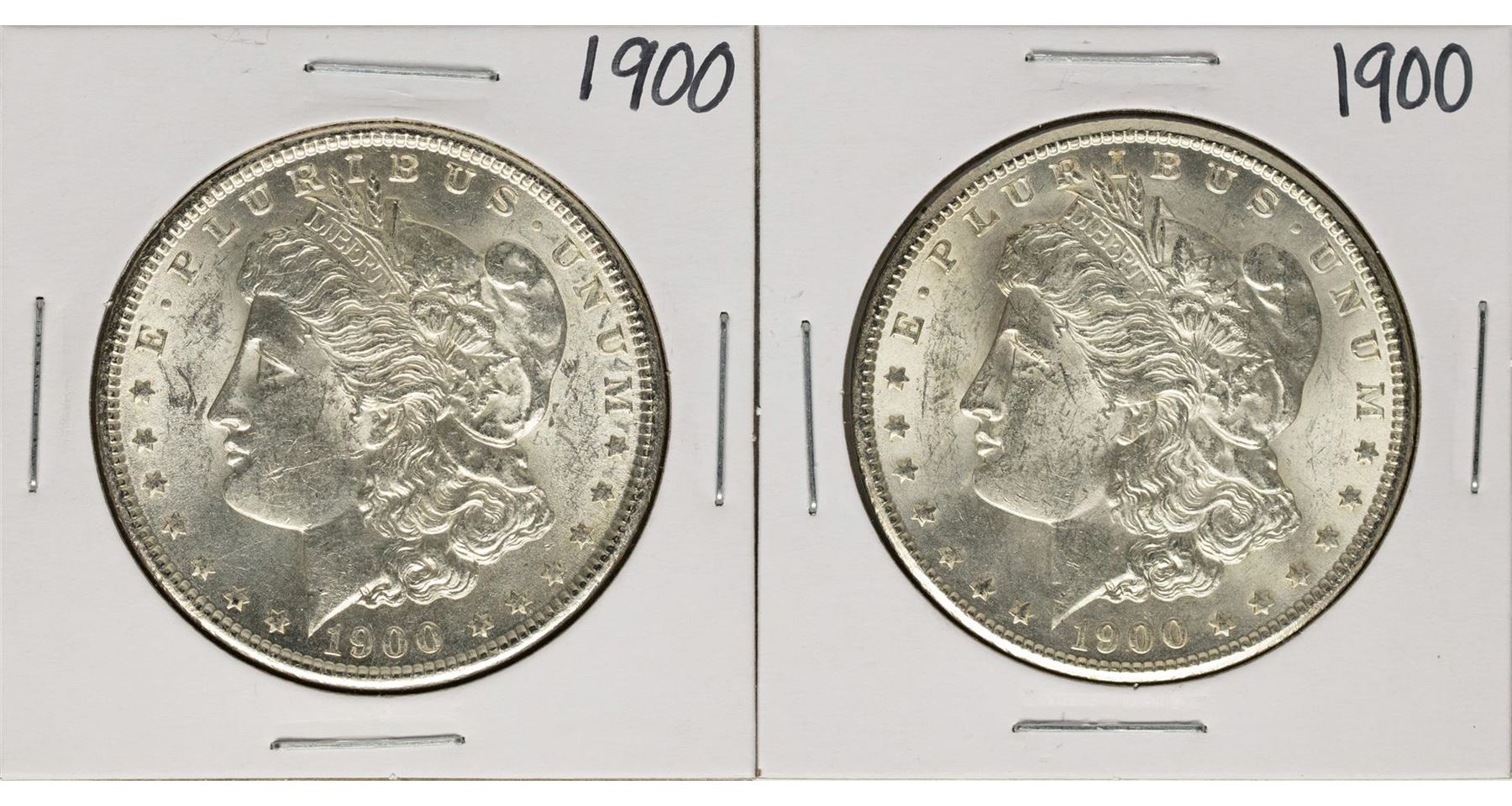 One Lot of (2) 1900 $1 Morgan Silver Dollar Coins.