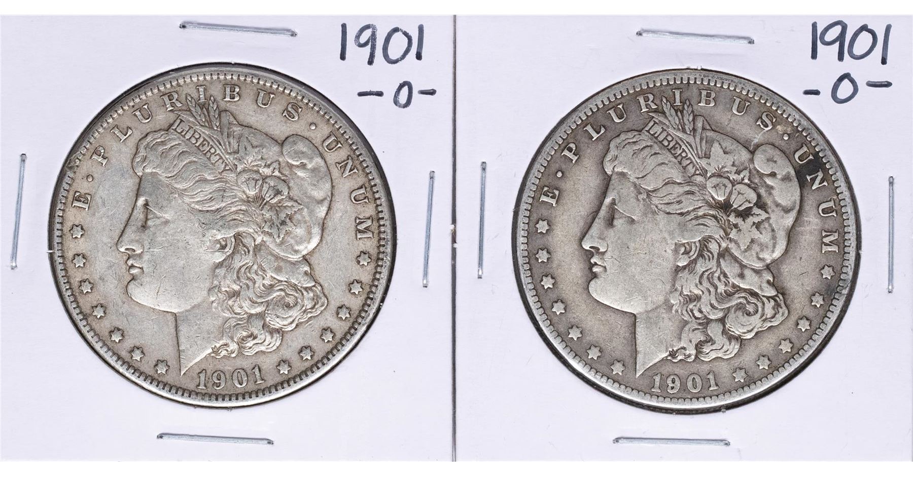 One Lot of (2) 1901-O $1 Morgan Silver Dollar Coins.