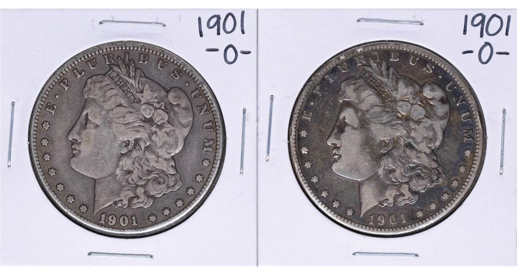 One Lot of (2) 1901-O $1 Morgan Silver Dollar Coins.