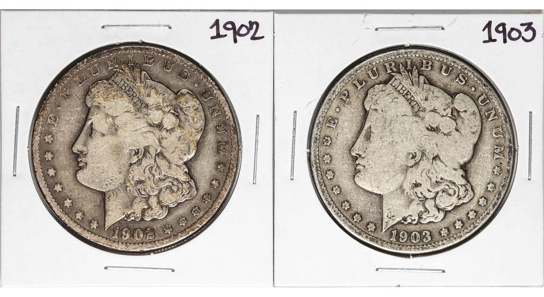One Lot of (2) 1902-1903 $1 Morgan Silver Dollar Coins.