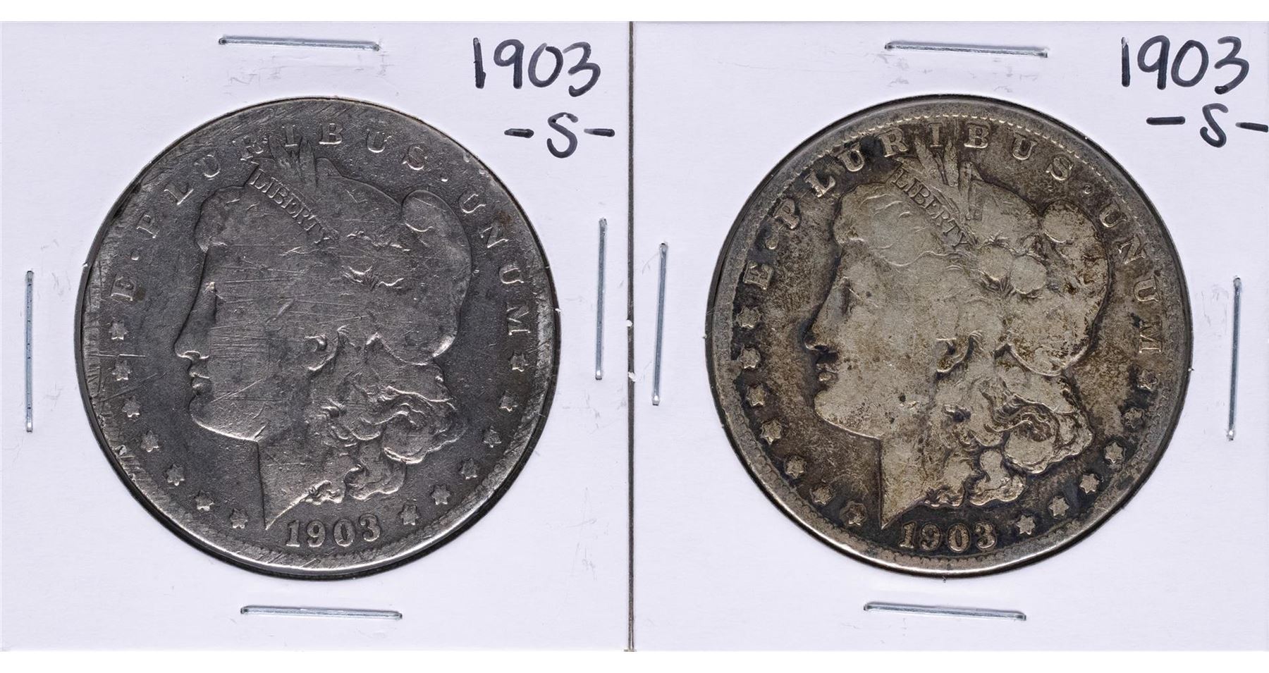 One Lot of (2) 1903-S $1 Morgan Silver Dollar Coins.