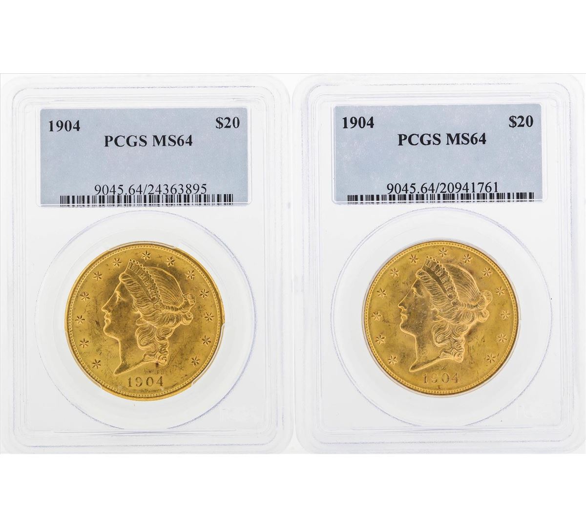 One Lot of (2) 1904 $20 Liberty Head Double Eagle Gold Coins PCGS MS64. PCGS Graded.