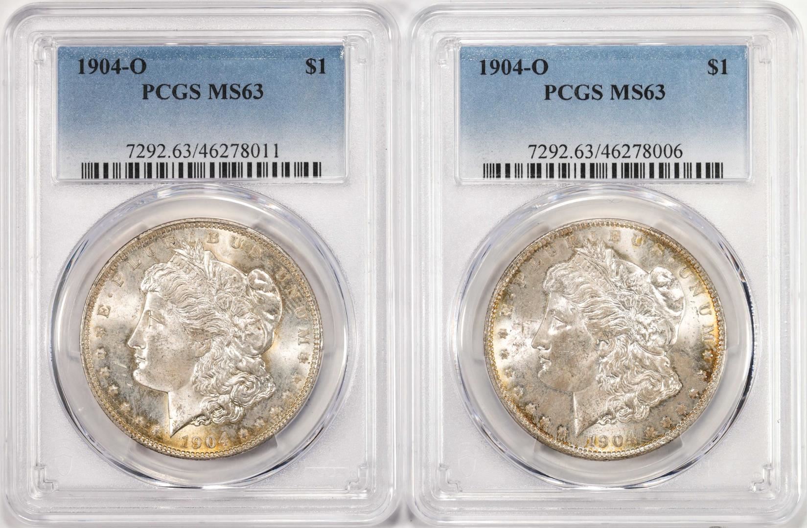 One Lot of (2) 1904-O $1 Morgan Silver Dollar Coins PCGS MS63. PCGS Graded.